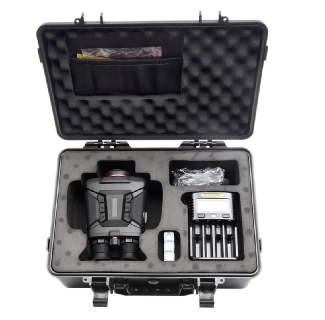 Cette bi-oculaire de haute technologie peut accepter trois piles au lithium rechargeables 18650 pour 8 heures de fonctionnement. Un capteur de proximité intégré permet d'économiser de l'énergie.