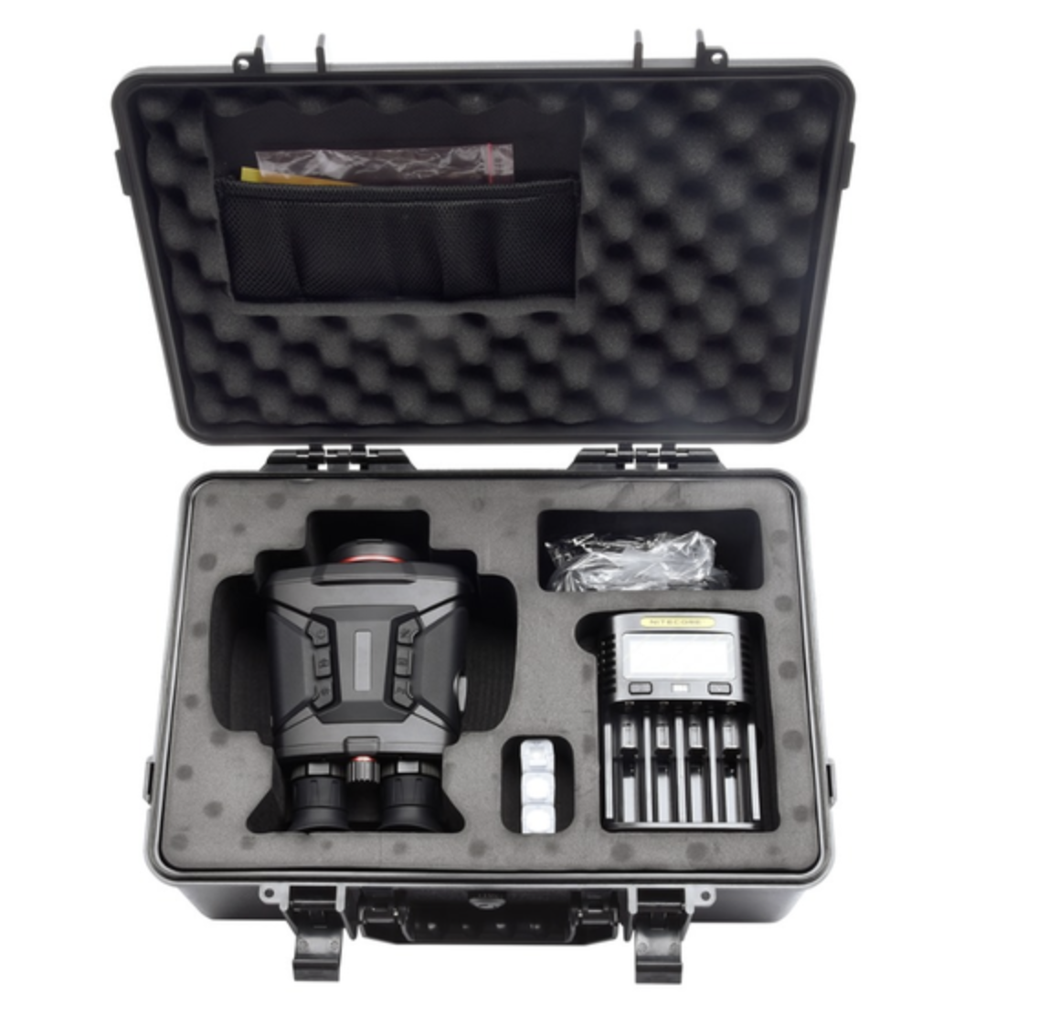 Ce bi-oculaire de haute technologie peut être alimenté par trois piles au lithium rechargeables 18650 pour une autonomie de 8 heures. Un capteur de proximité intégré permet d'économiser de l'énergie.